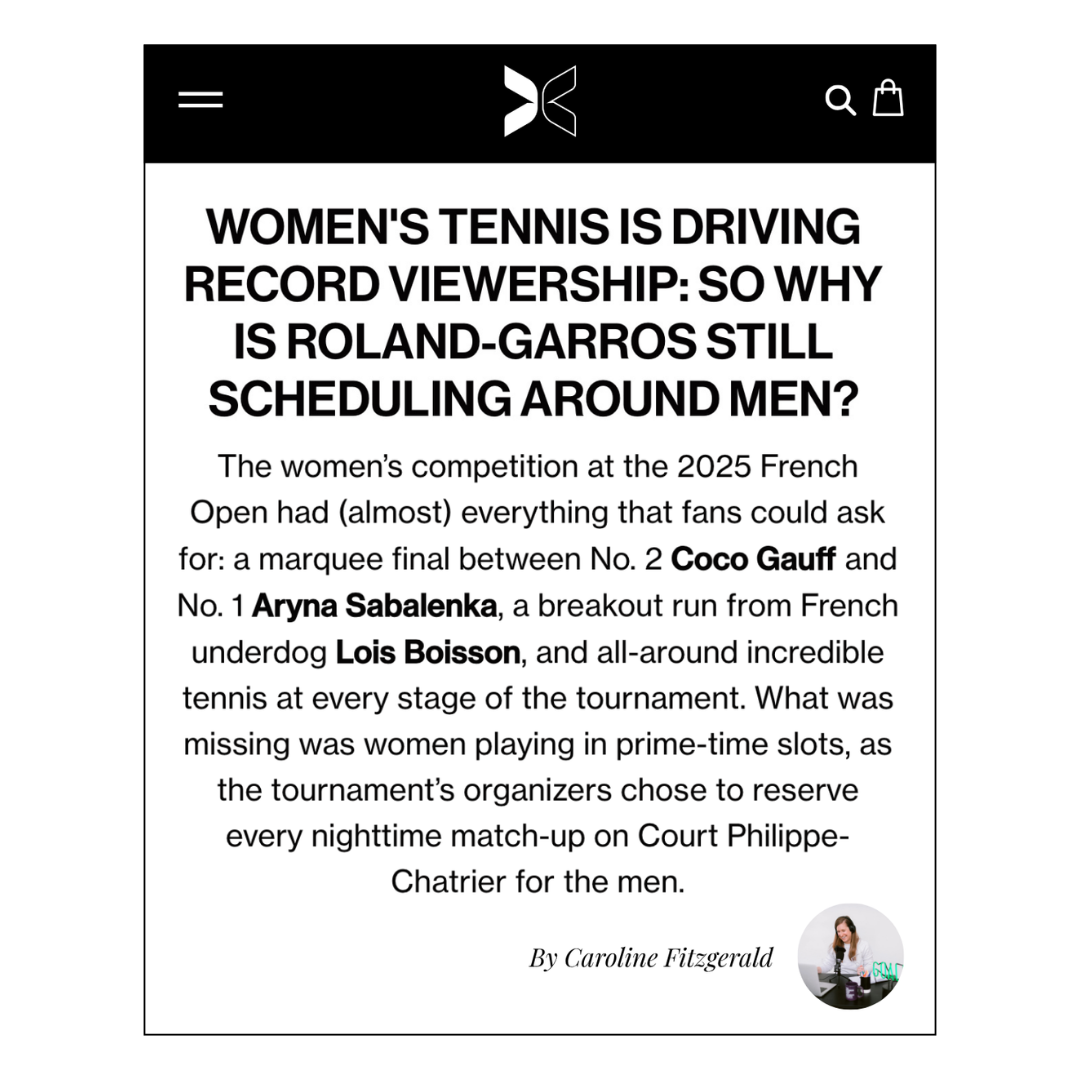Caroline covers the business of women's sports for TOGETHXR, which is a women's sports media platform founded in 2021 by Alex Morgan, Chloe Kim, Simone Manuel, and Sue Bird.